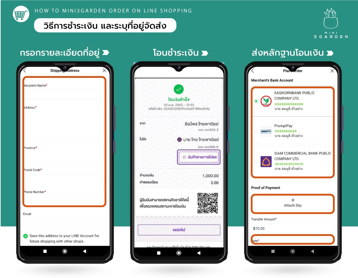 8. โอนชำระเงินตามช่องทาง หรือ ธนาคาร ที่ระบุการรับเงินของทางร้าน
