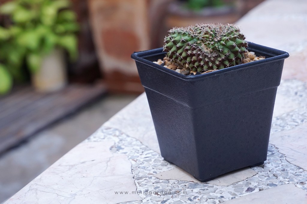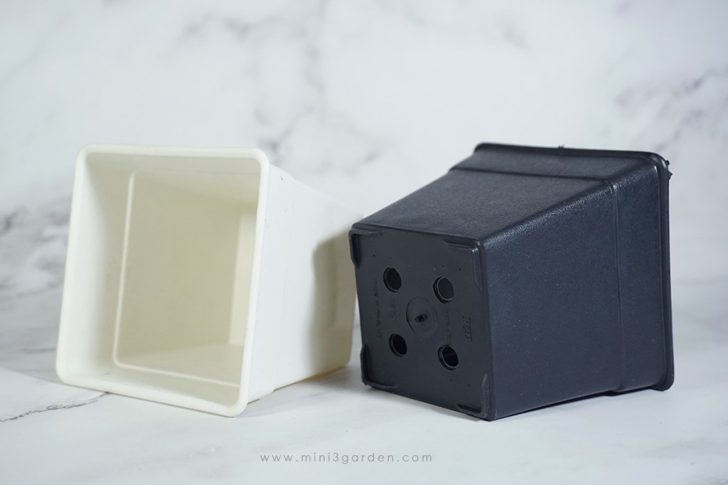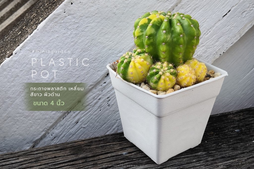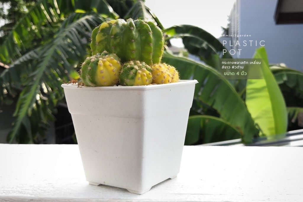 กระถางพลาสติก แคคตัส กระบองเพชร เหลี่ยม ก้นสอบ ผิวด้าน