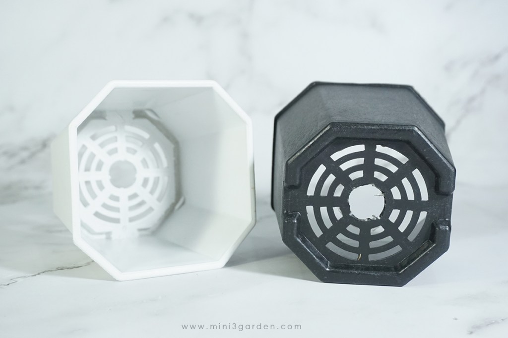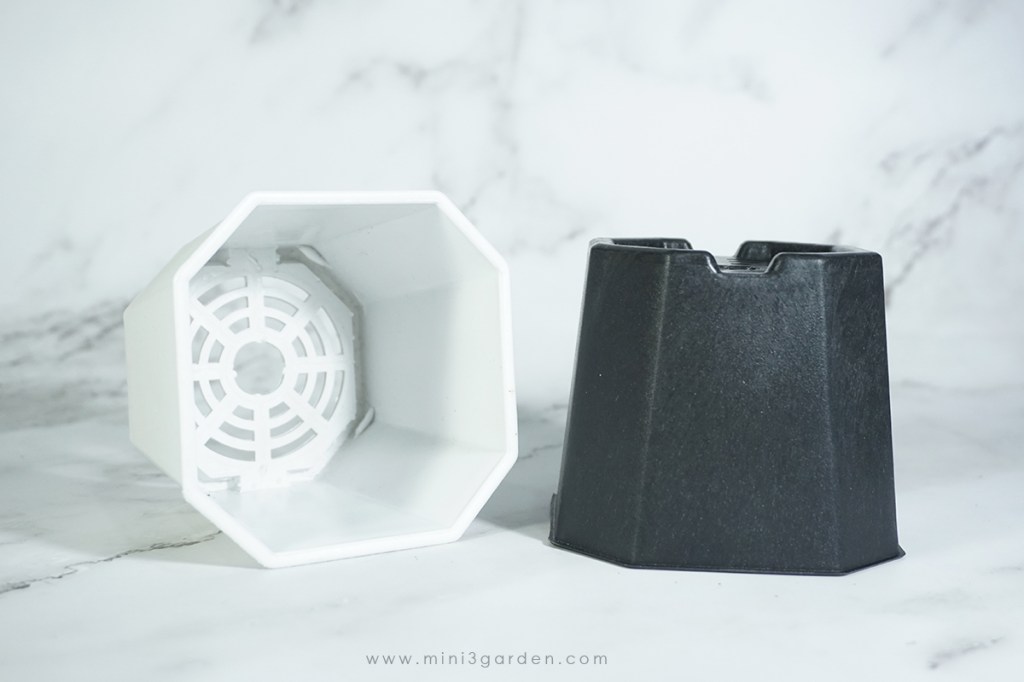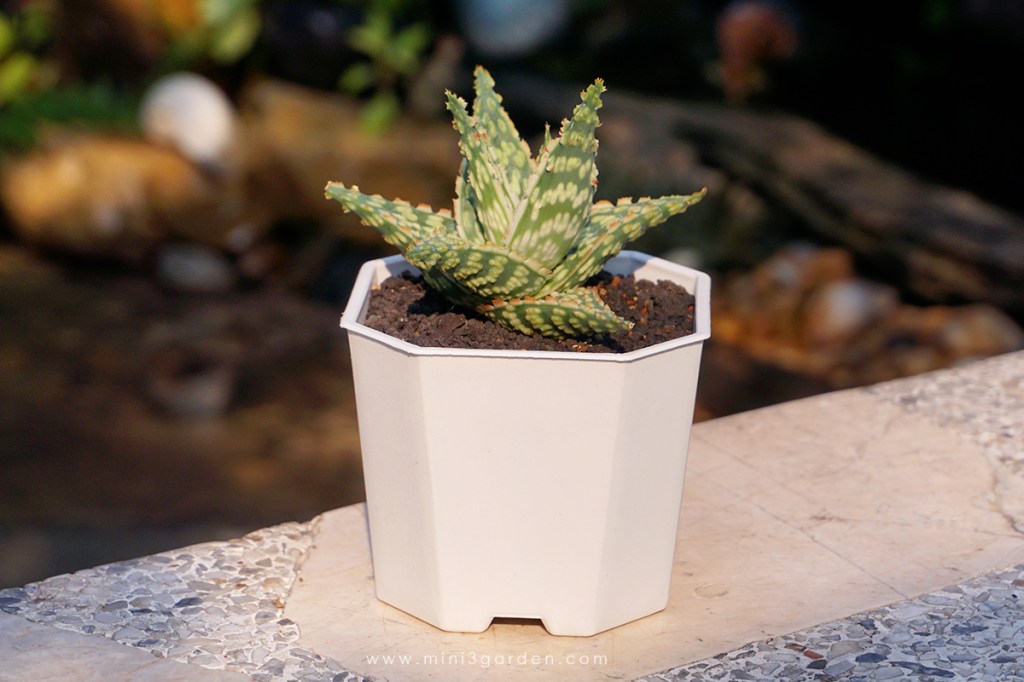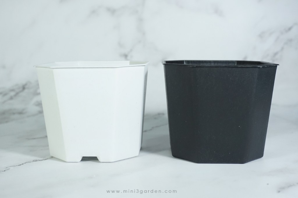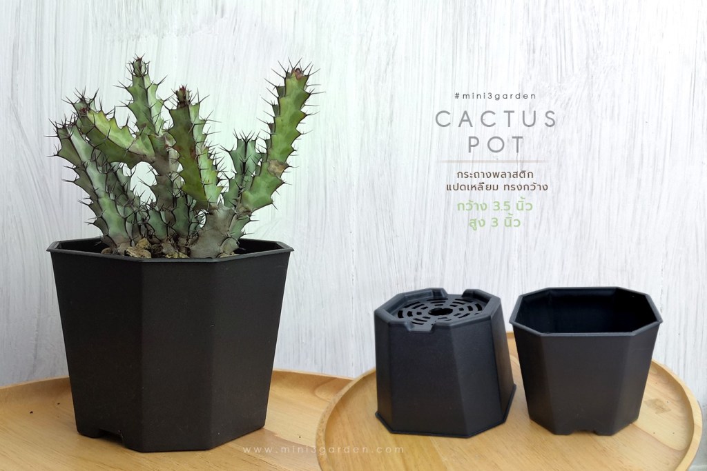 กระถางพลาสติก แคคตัส กระบองเพชร เหลี่ยมตัดมุม ก้นระบายน้ำได้ดี