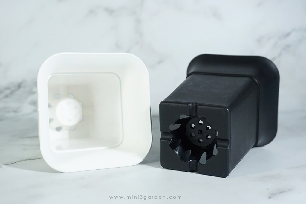 กระถางพลาสติก แคคตัส กระบองเพชร เหลี่ยม ทรงสูง งานสวย ก้นระบายน้ำได้ดี
