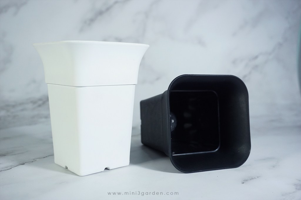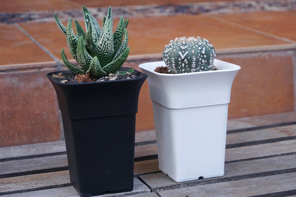 กระถางพลาสติก แคคตัส กระบองเพชร ทรงเหลี่ยม ปากบานทรงสูง