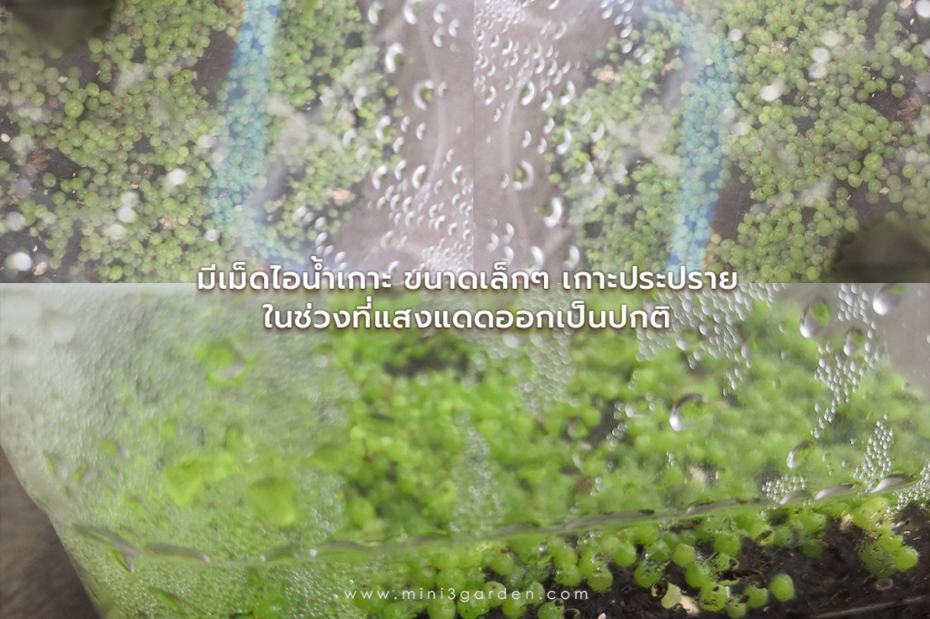 ให้สังเกตจากไอน้ำที่ระเหยมาเกาะอยู่ในกล่อง หรือภาชนะที่เราใช้เพาะ การควบแน่นจะทำให้เกิดเป็นเม็ดไอน้ำที่เกาะอยู่ หากไม่มีไอน้ำเกาะเลย ความชื้นในดินนั้นอาจจะน้อยเกินไป แต่ถ้าหากเม็ดไอน้ำมีขนาดใหญ่ และเยอะมาก หรือเกิดมีตะไคร่มาก นั้นอาจจะเป็นเพราะความชื้้นเยอะ และโดนแดดแรงเกินไป