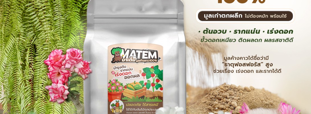 ให้ใช้ MATEM BAT GUANO มูลค้างคาว 100% โรยหน้ากระถาง 15 วัน / ครั้ง + MATEM Super food & Booster ผสมแบบเจือจาง รดลงดิน 3-5 วัน / ครั้ง