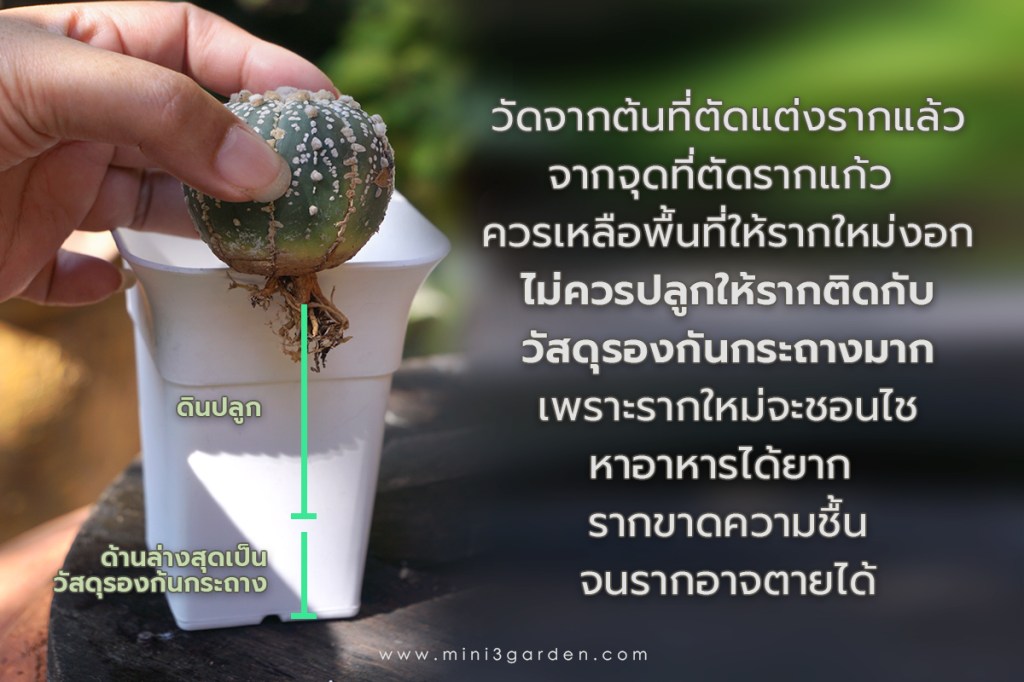 ในการปลูกกระบองเพชร หรือไม้อวบน้ำ วัสดุใช้โรยหน้ากระถางนั้นมีความจำเป็น เพราะจะช่วยประคองต้นตั้งตรง ไม่ล้มง่าย ในธรรมชาติ กระบองเพชร จะแทรกตัวในดิน หรือซอกหิน เป็นการประคองต้นแบบธรรมชาติ และการโรยวัสดุ หรือหิน ยังช่วยให้ดินไม่กระเด็นเวลารดน้ำ ด้วยดินกระบองเพชร จะมีลักษณะเบาร่วนซุย ไม่จับตัวจะทำไห้ดินไหล หรือกระเด็นเมื่อโดนน้ำได้