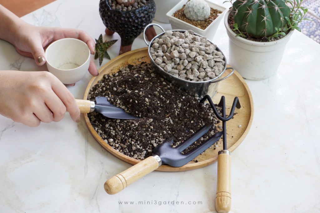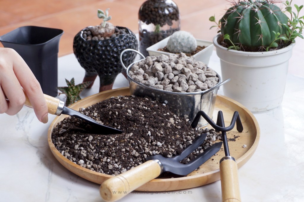 ใช้ปลูก เปลี่ยนกระถาง กระบองเพชร แคคตัส กุหลาบหิน ไม้อวบน้ำ 1 ชุด ประกอบด้วย / 4 อย่าง