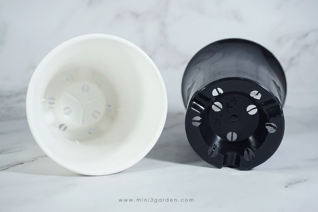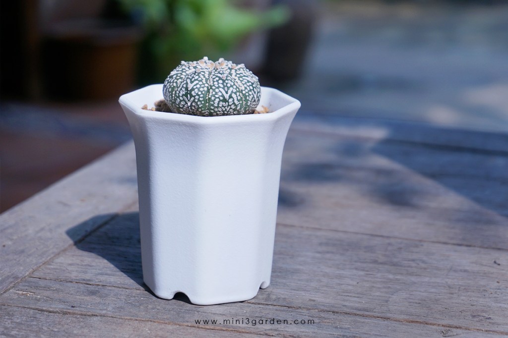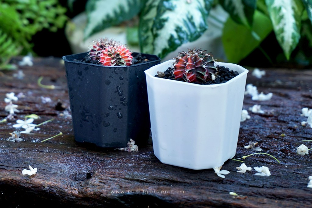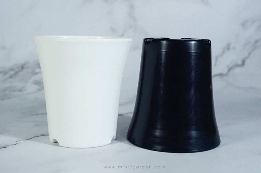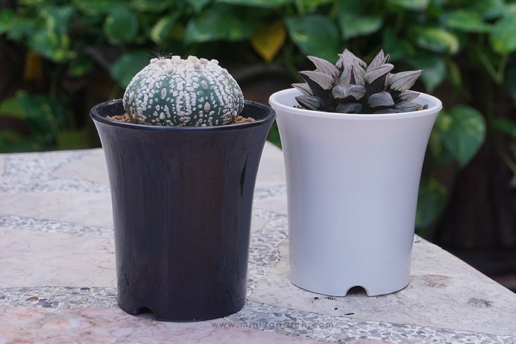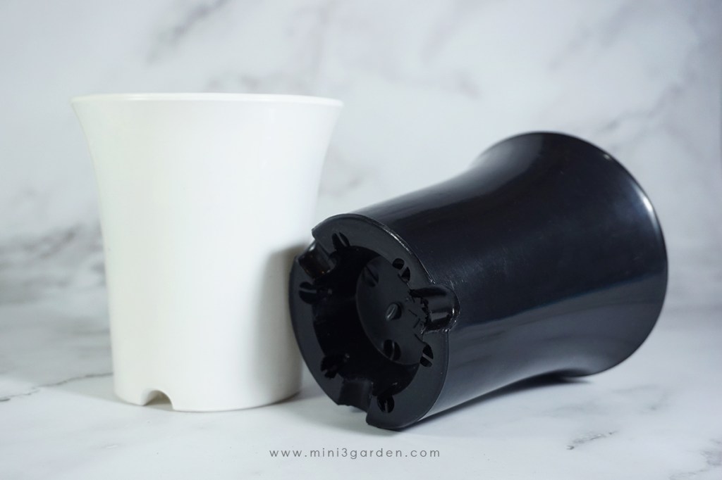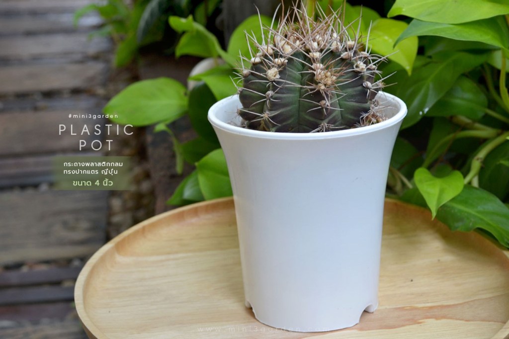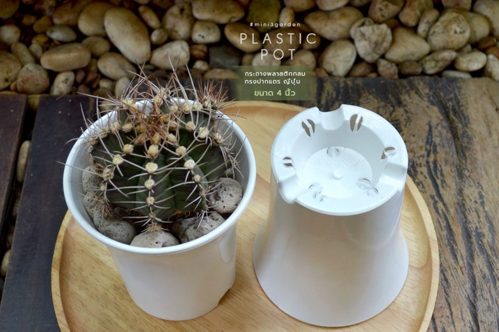 กระถางพลาสติก แคคตัส กระบองเพชร ทรงกลม ปากแตร ผิวมัน งานพรีเมี่ยม น้ำหนักเบา