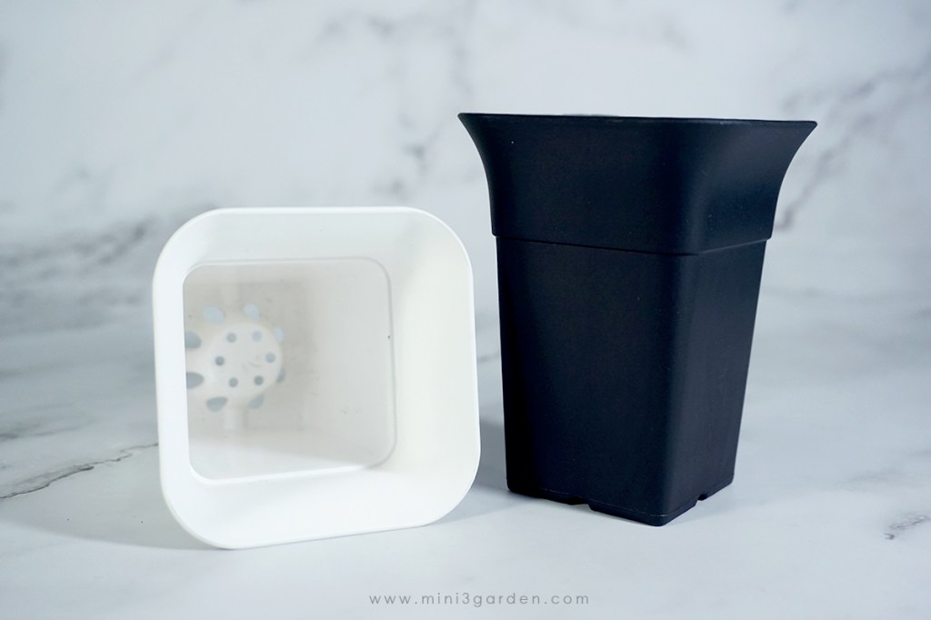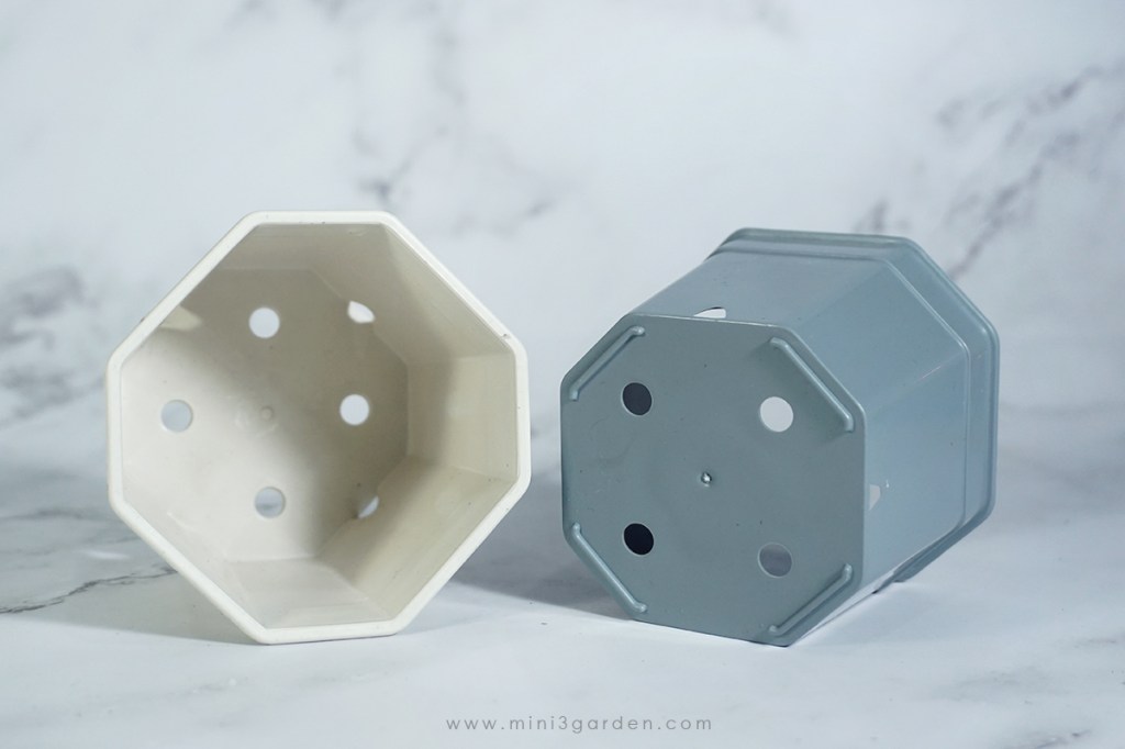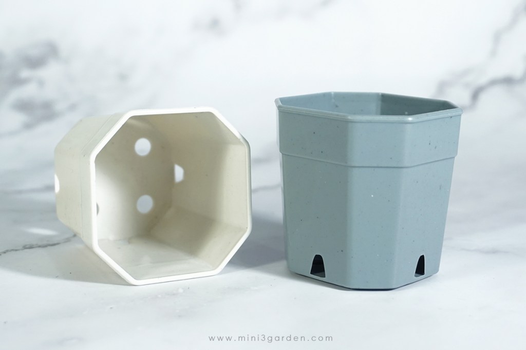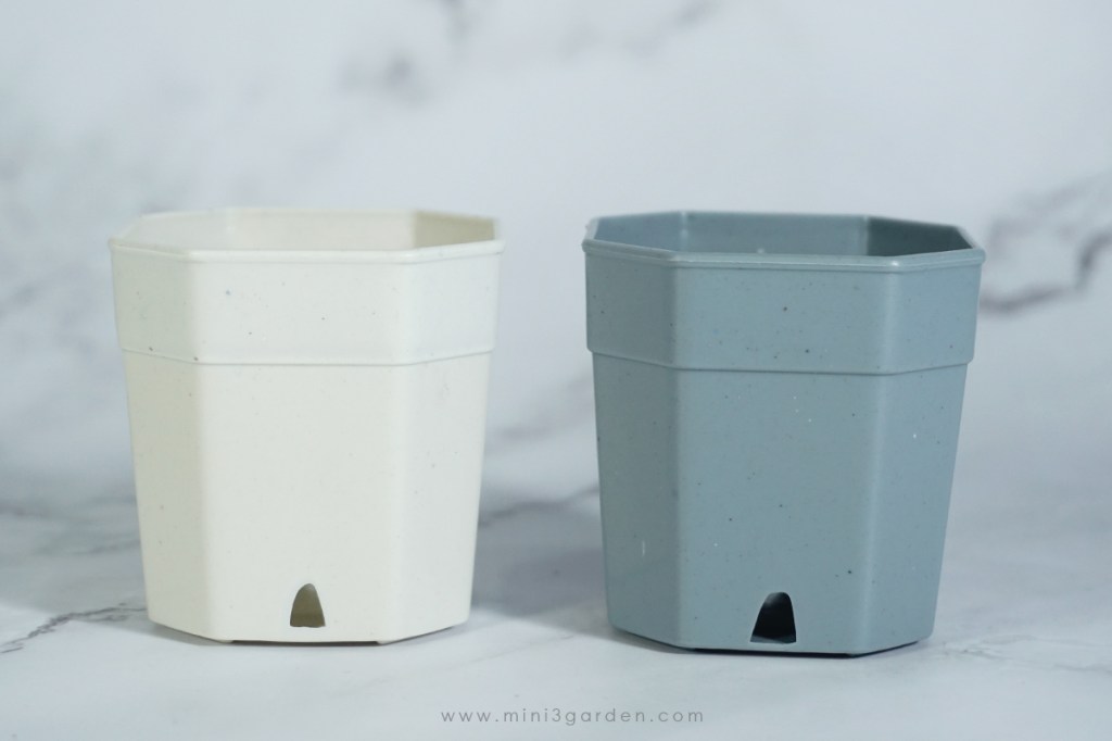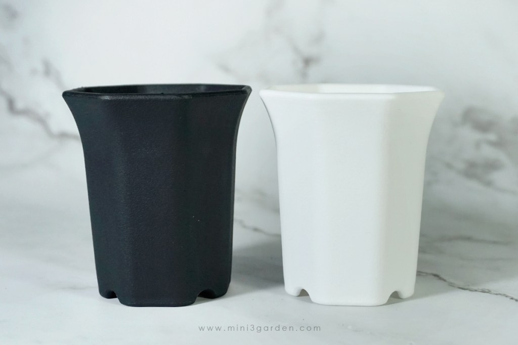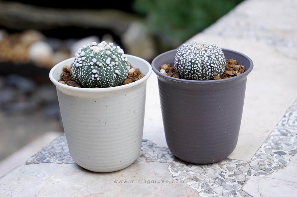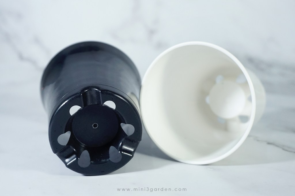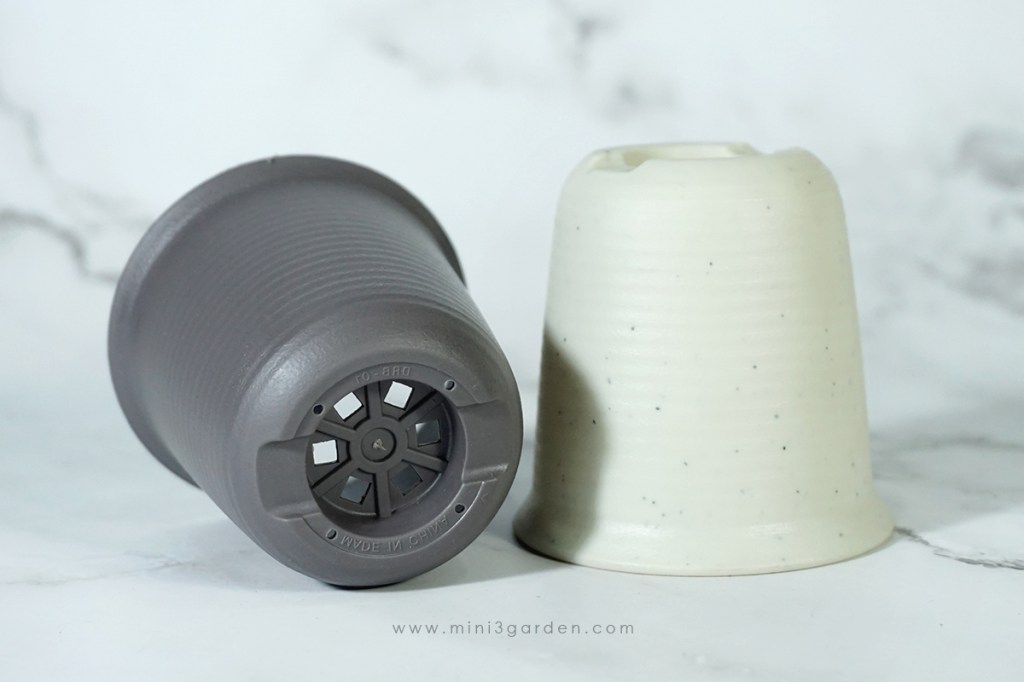 กระถางพลาสติก แคคตัส กระบองเพชร ทรงกลม ปากแตร ผิวมัน งานพรีเมี่ยม น้ำหนักเบา