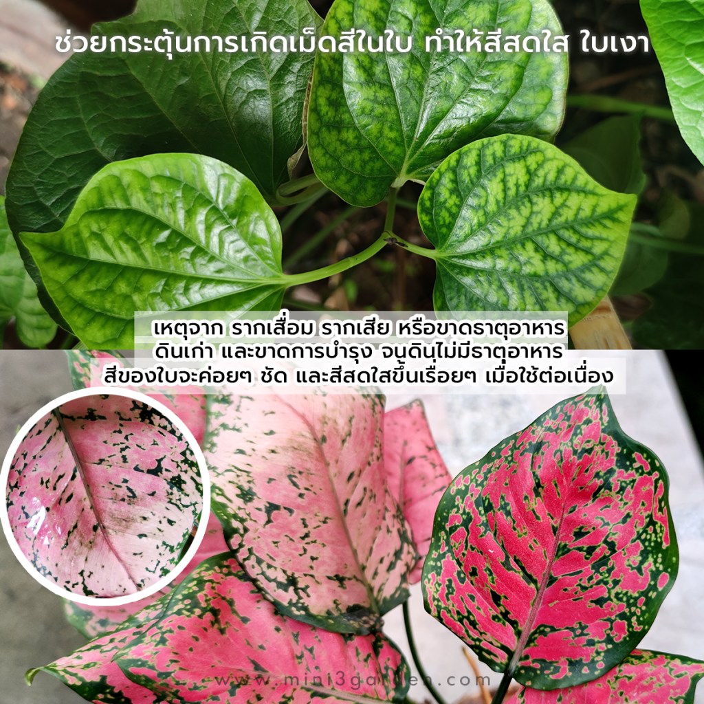 • ช่วยเสริมโครงสร้างของต้น ให้สมบูรณ์ ต้นอวบ โต ใบแน่น ใบฟู ใบสีเขียวสด มีคลอโรฟิลล์ ทำให้พืชสังเคราะห์ด้วยแสงดี