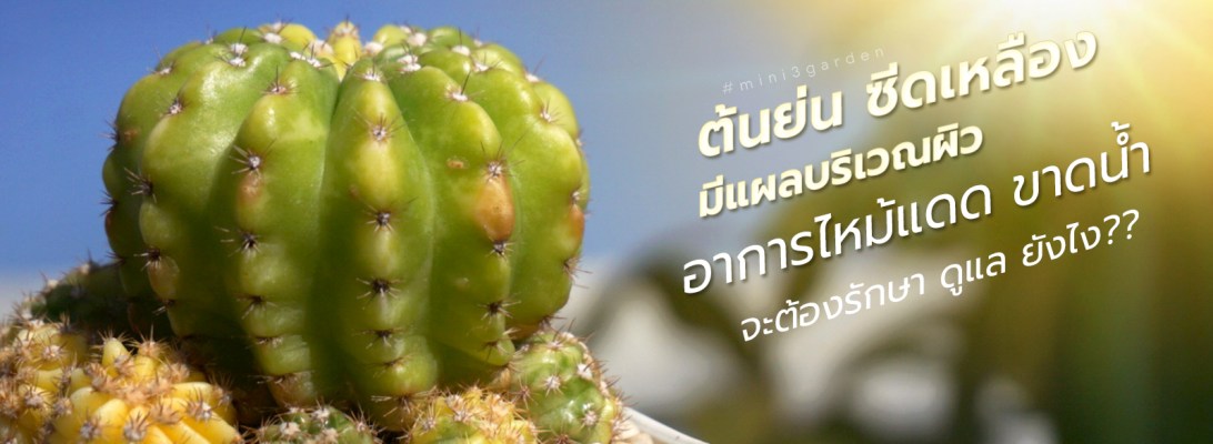 กระบองเพชร ต้นย่น ซีดเหลือง มีแผลบริเวณผิว เกิดจากอาการไหม้แดด ขาดน้ำ จะต้องรักษา ดูแล ยังไง??